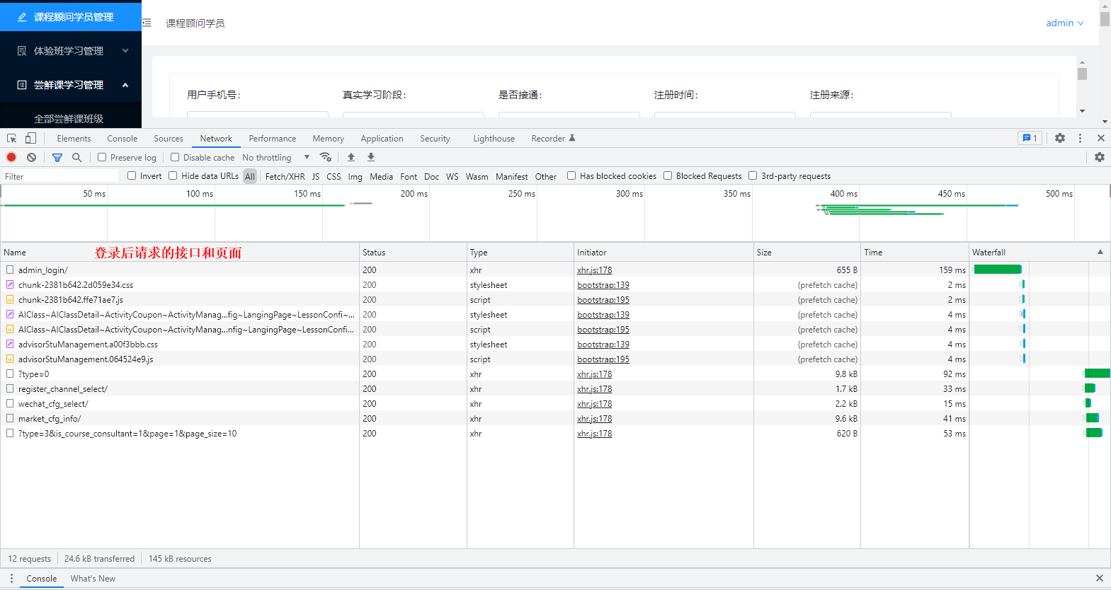 二:使用谷歌或其他浏览器登录网站或后台,按F12查看登录时请求的web页面和加载时间