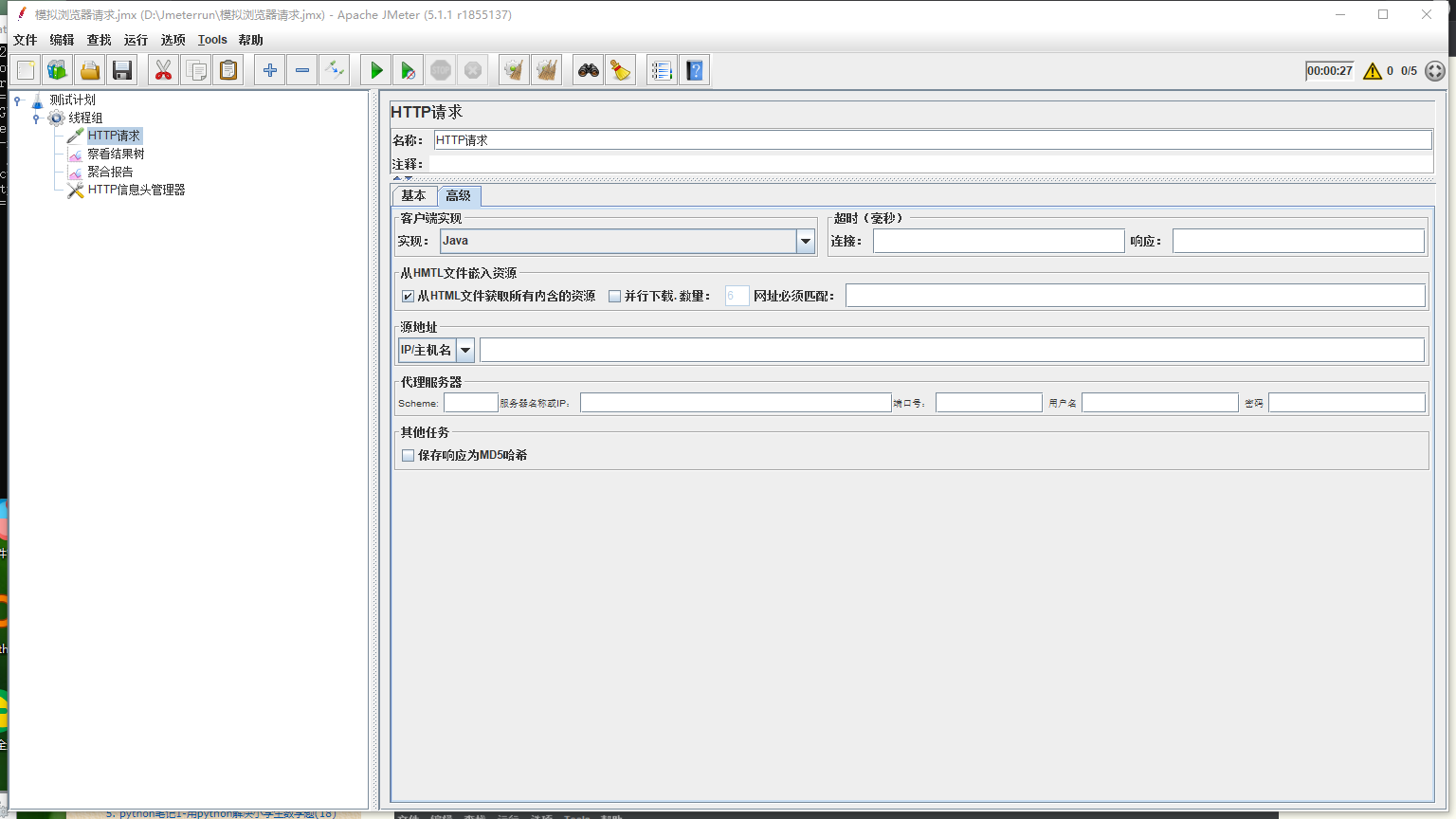 2.为了能够尽可能的模拟真实场景的压力测试,所有我们就需要用jmeter模拟浏览器获取web页面