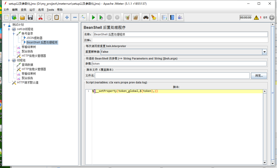 添加后置处理器-BeanShell后置处理程序-> ${__setProperty(token_global,${token},)}