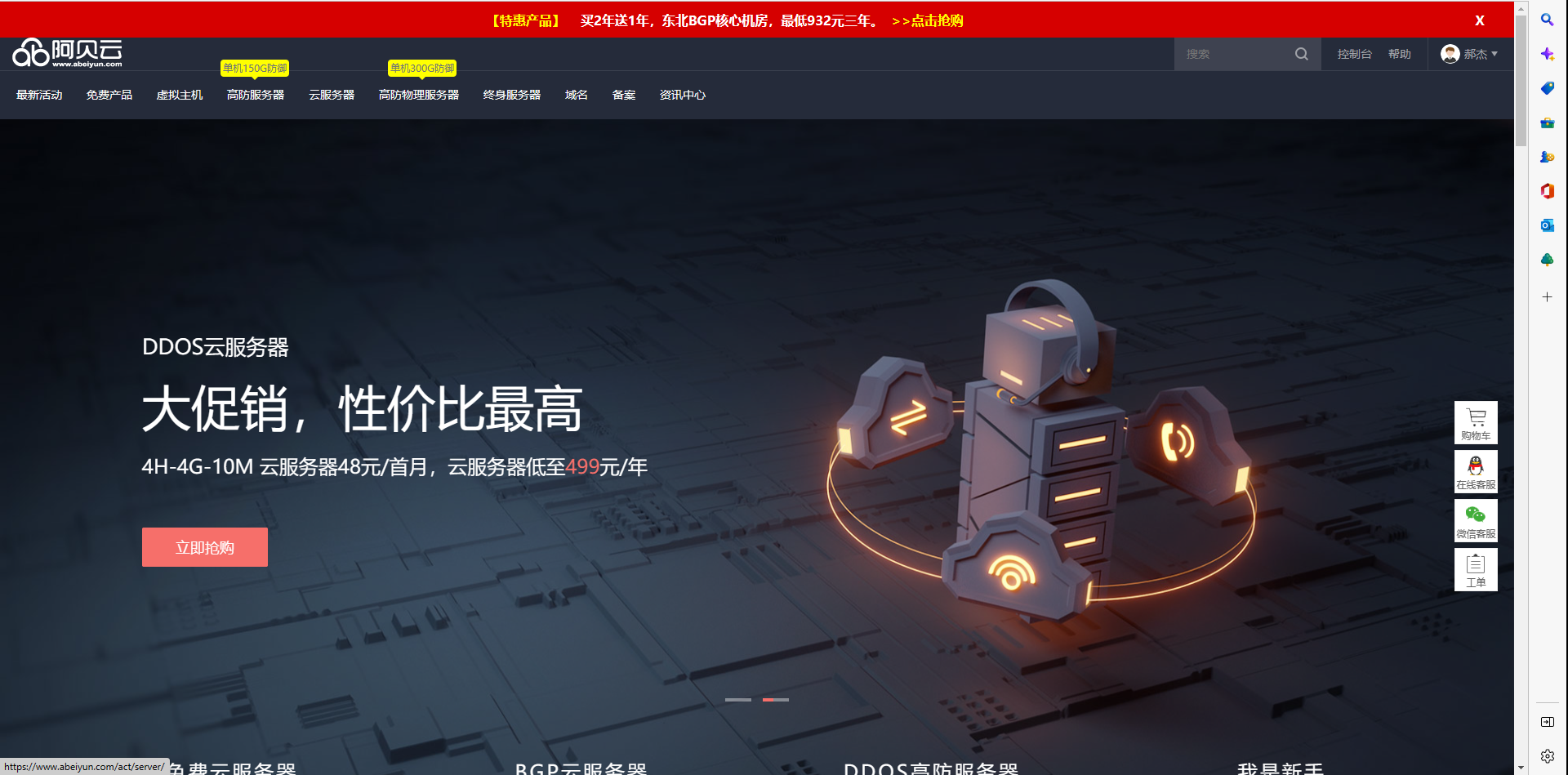 网站:阿贝云【ABY】领先的高防服务器、云服务器、虚拟主机、免费空间、高防空间服务商! (abeiyun.com)