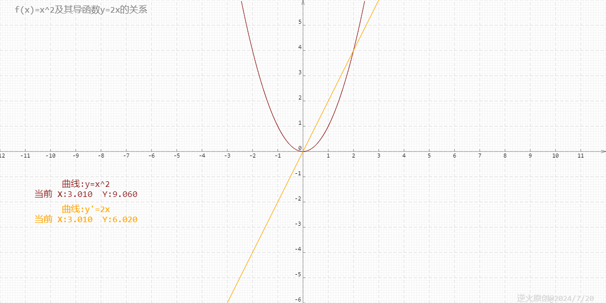 【高中数学/导数】幂函数y=x^2与其导数y=2x之间的关系