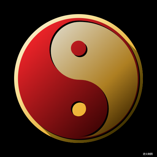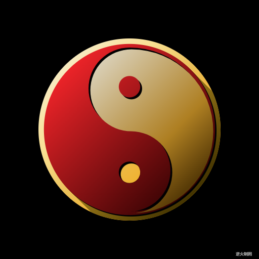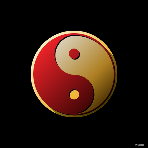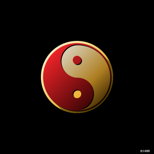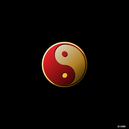 <!DOCTYPE html> <html lang="utf-8"> <meta http-equiv="Content-Type" content="text/html; charset=utf-8"/> <head> <title>红黄渐变阴影太极图 Draft1</title> <style type="text/css"> .centerlize{ margin:0 auto; width:1200px; } </style> </head> <body onload="init();"> <div class="centerlize"> <canvas id="myCanvas" width="12px" height="12px" style="border:1px dotted black;"> 如果看到这段文字说您的浏览器尚不支持HTML5 Canvas,请更换浏览器再试. </canvas> </div> </body> </html> <script type="text/javascript"> <!-- /***************************************************************** * 将全体代码(从<!DOCTYPE到script>)拷贝下来,粘贴到文本编辑器中, * 另存为.html文件,再用chrome浏览器打开,就能看到实现效果。 ******************************************************************/ // canvas的绘图环境 var ctx; // 高宽 const WIDTH=512; const HEIGHT=512; // 舞台对象 var stage; //------------------------------- // 初始化 //------------------------------- function init(){ // 获得canvas对象 var canvas=document.getElementById('myCanvas'); canvas.width=WIDTH; canvas.height=HEIGHT; // 初始化canvas的绘图环境 ctx=canvas.getContext('2d'); ctx.translate(WIDTH/2,HEIGHT/2);// 原点平移 // 准备 stage=new Stage(); stage.init(); // 开幕 animate(); } // 播放动画 function animate(){ stage.update(); stage.paintBg(ctx); stage.paintFg(ctx); // 循环 if(true){ //sleep(100); window.requestAnimationFrame(animate); } } // 舞台类 function Stage(){ // 初始化 this.init=function(){ } // 更新 this.update=function(){ } // 画背景 this.paintBg=function(ctx){ ctx.clearRect(-WIDTH/2,-HEIGHT/2,WIDTH,HEIGHT);// 清屏 } // 画前景 this.paintFg=function(ctx){ // 底色 ctx.save(); ctx.fillStyle = "black"; ctx.fillRect(-WIDTH/2,-HEIGHT/2,WIDTH,HEIGHT); ctx.restore(); const R=210;//基准尺寸 // #1 黄圈 ctx.save(); var r=R*1.00; var gntYellow=ctx.createLinearGradient(-r/Math.sqrt(2),-r/Math.sqrt(2),r/Math.sqrt(2),r/Math.sqrt(2)); gntYellow.addColorStop(0,"rgb(247,234,193)"); gntYellow.addColorStop(0.25,"rgb(249,224,147)"); gntYellow.addColorStop(0.5,"rgb(235,192,88)"); gntYellow.addColorStop(0.75,"rgb(240,177,46)"); gntYellow.addColorStop(1,"rgb(186,130,14)"); drawSolidCircle(ctx,0,0,r,gntYellow); ctx.restore(); // 阴影 ctx.save(); var r=R*0.94; ctx.beginPath(); ctx.arc(0,0,R,0,Math.PI*2,false); ctx.closePath(); ctx.clip(); var a=createPt(r/Math.sqrt(2),-r/Math.sqrt(2)); var c=createPt(a.x+R/Math.sqrt(2),a.y+R/Math.sqrt(2)); var b=createPt(-r/Math.sqrt(2),r/Math.sqrt(2)); var d=createPt(b.x+R/Math.sqrt(2),b.y+R/Math.sqrt(2)); var gnt=ctx.createLinearGradient(0,0,R/Math.sqrt(2),R/Math.sqrt(2)); gnt.addColorStop(0,"rgb(169,132,29)"); gnt.addColorStop(1,"rgb(67,52,0)"); ctx.fillStyle=gnt; ctx.beginPath(); ctx.moveTo(a.x,a.y); ctx.lineTo(c.x,c.y); ctx.lineTo(d.x,d.y); ctx.lineTo(b.x,b.y); ctx.closePath(); ctx.fill(); ctx.restore(); // 偏心圆 ctx.save(); var r=R*0.94; drawSolidCircle(ctx,r/60,r/60,r,"rgb(1,1,3)"); ctx.restore(); // 红圆 ctx.save(); var r=R*0.94; var gntRed=ctx.createLinearGradient(-r/Math.sqrt(2),-r/Math.sqrt(2),r/Math.sqrt(2),r/Math.sqrt(2)); gntRed.addColorStop(0,"rgb(235,35,40)"); gntRed.addColorStop(1,"rgb(51,2,2)"); drawSolidCircle(ctx,0,0,r,gntRed); ctx.restore(); // 下小黑阴影圆 ctx.save(); var r=R*0.94; drawSolidCircle(ctx,0,r/2,r/8,"rgb(2,1,2)"); ctx.restore(); // 下小黄偏心圆 ctx.save(); var r=R*0.94; ctx.beginPath(); ctx.arc(0,r/2,r/8,0,Math.PI*2,false); ctx.closePath(); ctx.clip(); drawSolidCircle(ctx,0+r/45,r/2+r/45,r/8,gntYellow); ctx.restore(); // 上黑阴逗号 ctx.save(); var r=R*0.90; ctx.fillStyle="rgb(2,1,2)"; ctx.beginPath(); ctx.arc(0,-r/2,r/2,-Math.PI/2,Math.PI/2,true); ctx.arc(0,+r/2,r/2,-Math.PI/2,Math.PI/2,false); ctx.arc(0,0,r,Math.PI/2,-Math.PI/2,true); ctx.closePath(); ctx.fill(); ctx.restore(); // 上黄面逗号 ctx.save(); var r=R*0.90; var gntYellow2=ctx.createLinearGradient(-r/Math.sqrt(2),-r/Math.sqrt(2),r/Math.sqrt(2),r/Math.sqrt(2)); gntYellow2.addColorStop(0,"rgb(223,218,202)"); gntYellow2.addColorStop(0.7,"rgb(174,127,34)"); gntYellow2.addColorStop(1,"rgb(88,59,7)"); ctx.fillStyle=gntYellow2; ctx.beginPath(); ctx.arc(0+r/45,-r/2+r/45,r/2,-Math.PI/2,Math.PI/2,true); ctx.arc(0+r/45,+r/2+r/45,r/2,-Math.PI/2,Math.PI/2,false); ctx.arc(0+r/45,0+r/45,r,Math.PI/2,-Math.PI/2,true); ctx.closePath(); ctx.fill(); ctx.restore(); // 上小黑偏心圆 ctx.save(); var r=R*0.94; drawSolidCircle(ctx,0+r/45,-r/2+r/45,r/8,"rgb(2,1,2)"); ctx.restore(); // 上小红圆 ctx.save(); var r=R*0.94; drawSolidCircle(ctx,0,-r/2,r/8,gntRed); ctx.restore(); writeText(ctx,WIDTH/2-30,HEIGHT/2-5,"逆火制图","8px consolas","lightgrey");// 版权 } } /*---------------------------------------------------------- 函数:用于绘制实心圆 ctx:绘图上下文 x:矩形中心横坐标 y:矩形中心纵坐标 r:圆半径 style:填充圆的方案 ----------------------------------------------------------*/ function drawSolidCircle(ctx,x,y,r,style){ ctx.fillStyle=style; ctx.beginPath(); ctx.arc(x,y,r,0,Math.PI*2,false); ctx.closePath(); ctx.fill(); } /*---------------------------------------------------------- 函数:创建一个二维坐标点 x:横坐标 y:纵坐标 Pt即Point ----------------------------------------------------------*/ function createPt(x,y){ var retval={}; retval.x=x; retval.y=y; return retval; } /*---------------------------------------------------------- 函数:延时若干毫秒 milliseconds:毫秒数 ----------------------------------------------------------*/ function sleep(milliSeconds) { const date = Date.now(); let currDate = null; while (currDate - date < milliSeconds) { currDate = Date.now(); } } /*---------------------------------------------------------- 函数:书写文字 ctx:绘图上下文 x:横坐标 y:纵坐标 text:文字 font:字体 color:颜色 ----------------------------------------------------------*/ function writeText(ctx,x,y,text,font,color){ ctx.sa