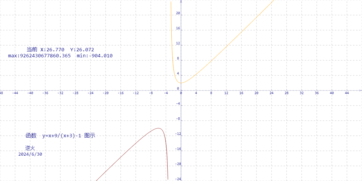 上面的解法而已经得出x+2y=x+9/(x+3)-1,有了这个就能绘出函数图线了,从函数式上可以看出这又是个对勾函数。