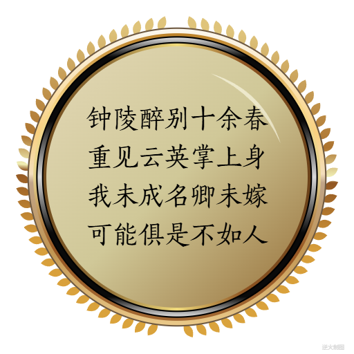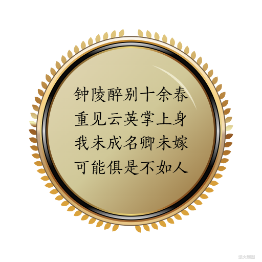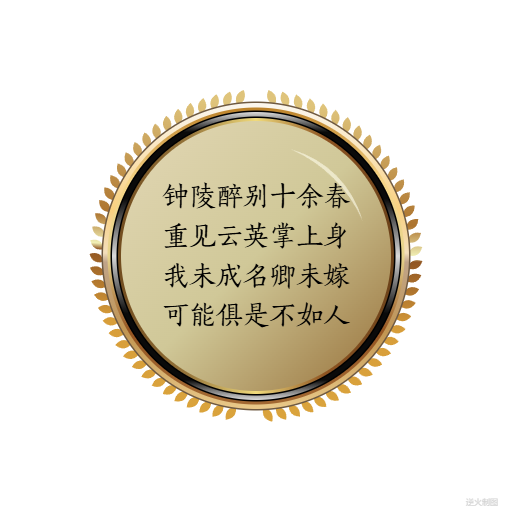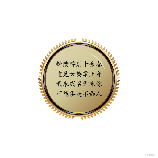 <!DOCTYPE html> <html lang="utf-8"> <meta http-equiv="Content-Type" content="text/html; charset=utf-8"/> <head> <title>金穗黑边黄底徽章 Draft1 可能俱是不如人</title> <style type="text/css"> .centerlize{ margin:0 auto; width:1200px; } </style> </head> <body onload="init();"> <div class="centerlize"> <canvas id="myCanvas" width="12px" height="12px" style="border:1px dotted black;"> 如果看到这段文字说您的浏览器尚不支持HTML5 Canvas,请更换浏览器再试. </canvas> </div> </body> </html> <script type="text/javascript"> <!-- /***************************************************************** * 将全体代码(从<!DOCTYPE到script>)拷贝下来,粘贴到文本编辑器中, * 另存为.html文件,再用chrome浏览器打开,就能看到实现效果。 ******************************************************************/ // canvas的绘图环境 var ctx; // 高宽 const WIDTH=512; const HEIGHT=512; // 舞台对象 var stage; //------------------------------- // 初始化 //------------------------------- function init(){ // 获得canvas对象 var canvas=document.getElementById('myCanvas'); canvas.width=WIDTH; canvas.height=HEIGHT; // 初始化canvas的绘图环境 ctx=canvas.getContext('2d'); ctx.translate(WIDTH/2,HEIGHT/2);// 原点平移 // 准备 stage=new Stage(); stage.init(); // 开幕 animate(); } // 播放动画 function animate(){ stage.update(); stage.paintBg(ctx); stage.paintFg(ctx); // 循环 if(true){ //sleep(100); window.requestAnimationFrame(animate); } } // 舞台类 function Stage(){ // 初始化 this.init=function(){ } // 更新 this.update=function(){ } // 画背景 this.paintBg=function(ctx){ ctx.clearRect(-WIDTH/2,-HEIGHT/2,WIDTH,HEIGHT);// 清屏 } // 画前景 this.paintFg=function(ctx){ // 底色 ctx.save(); ctx.fillStyle = "white"; ctx.fillRect(-WIDTH/2,-HEIGHT/2,WIDTH,HEIGHT); ctx.restore(); const R=210;// 基准尺寸 // 第1圈 ctx.save(); var r=R*1.00; var gnt=ctx.createLinearGradient(0,-r,0,r); gnt.addColorStop(0,"rgb(223,196,123)"); gnt.addColorStop(0.4,"rgb(173,116,47)"); gnt.addColorStop(0.5,"rgb(241,240,182)"); gnt.addColorStop(0.52,"rgb(145,86,35)"); gnt.addColorStop(0.75,"rgb(216,158,58)"); gnt.addColorStop(1,"rgb(218,163,60)"); var N=36; // 左橄榄枝 drawLeftOliver(ctx,0,0,r,N,Math.PI/2+Math.PI/72,Math.PI/2*3-Math.PI/24,Math.PI/6,Math.PI/4,gnt); // 右橄榄枝 drawRightOliver(ctx,0,0,r,N,-Math.PI/2+Math.PI/24,Math.PI/2+Math.PI/72,Math.PI/6,Math.PI/4,gnt); ctx.restore(); // 第2圈 ctx.save(); var r=R*1.03; drawSolidCircle(ctx,0,0,r,"rgb(111,90,66)"); ctx.restore(); // 第3圈 ctx.save(); var r=R*1.02; var gnt=ctx.createLinearGradient(0,-r,0,r); gnt.addColorStop(0,"rgb(251,247,239)"); gnt.addColorStop(0.35,"rgb(249,208,127)"); gnt.addColorStop(0.49,"rgb(243,222,188)"); gnt.addColorStop(0.52,"rgb(192,164,137)"); gnt.addColorStop(0.75,"rgb(194,150,82)"); gnt.addColorStop(1,"rgb(234,201,137)"); drawSolidCircle(ctx,0,0,r,gnt); ctx.restore(); // 第4圈 ctx.save(); var r=R*0.99; var gnt=ctx.createLinearGradient(0,-r,0,r); gnt.addColorStop(0,"rgb(188,130,42)"); gnt.addColorStop(0.25,"rgb(247,214,136)"); gnt.addColorStop(0.5,"rgb(231,212,142)"); gnt.addColorStop(0.75,"rgb(149,85,34)"); gnt.addColorStop(1,"rgb(163,105,51)"); drawSolidCircle(ctx,0,0,r,gnt); ctx.restore(); // 第5圈 ctx.save(); var r=R*0.97; drawSolidCircle(ctx,0,0,r,"black"); ctx.restore(); // 第6圈 ctx.save(); var r=R*0.96; var gnt=ctx.createLinearGradient(0,-r,0,r); gnt.addColorStop(0,"rgb(218,218,218)"); gnt.addColorStop(0.07,"rgb(10,10,10)"); gnt.addColorStop(0.30,"rgb(10,10,10)"); gnt.addColorStop(0.5,"rgb(218,218,218)"); gnt.addColorStop(0.70,"rgb(10,10,10)"); gnt.addColorStop(0.93,"rgb(10,10,10)"); gnt.addColorStop(1,"rgb(218,218,218)"); drawSolidCircle(ctx,0,0,r,gnt); ctx.restore(); // 第7圈 ctx.save(); var r=R*0.93; drawSolidCircle(ctx,0,0,r,"black"); ctx.restore(); // 第8圈 ctx.save(); var r=R*0.92; var gnt=ctx.createLinearGradient(-r,0,r,0); gnt.addColorStop(0,"rgb(113,76,31)"); gnt.addColorStop(0.25,"rgb(148,115,57)"); gnt.addColorStop(0.5,"rgb(241,219,124)"); gnt.addColorStop(0.75,"rgb(141,83,33)"); gnt.addColorStop(1,"rgb(107,66,26)"); drawSolidCircle(ctx,0,0,r,gnt); ctx.restore(); // 第9圈 ctx.save(); var r=R*0.90; var gnt=ctx.createLinearGradient(-r,-r,r,r); gnt.addColorStop(0,"rgb(226,215,181)"); gnt.addColorStop(0.5,"rgb(208,200,152)"); gnt.addColorStop(1,"rgb(150,111,56)"); drawSolidCircle(ctx,0,0,r,gnt); ctx.restore(); // 诗歌正文 ctx.save(); var r=R*0.93; var color="black"; var start=createPt(0,-r/3.05); var gap=r/3.5; var sz=R/5.6; writeText(ctx,start.x,start.y,"钟陵醉别十余春",sz+"px 方正宋刻本秀楷简体",color); writeText(ctx,start.x,start.y+gap,"重见云英掌上身",sz+"px 方正宋刻本秀楷简体",color); writeText(ctx,start.x,start.y+2*gap, "我未成名卿未嫁",sz+"px 方正宋刻本秀楷简体",color); writeText(ctx,start.x,start.y+3*gap,"可能俱是不如人",sz+"px 方正宋刻本秀楷简体",color); ctx.restore(); // 第10圈 ctx.save(); var r=R*0.75; var a=createPt(r*Math.cos(-Math.PI/10),r*Math.sin(-Math.PI/10)); var b=createPt(r*Math.cos(-Math.PI/10*4),r*Math.sin(-Math.PI/10*4)); var c=createPt(a.x/2+b.x/2,a.y/2+b.y/2); var l=0.24*r; var d=createPt(c.x+l*Math.cos(-Math.PI/4),c.y+l*Math.sin(-Math.PI/4)); l=0.17*r; var e=createPt(c.x+l*Math.cos(-Math.PI/4),c.y+l*Math.sin(-Math.PI/4)); ctx.fillStyle="rgba(255,253,235,0.6)"; ctx.beginPath(); ctx.moveTo(a.x,a.y); ctx.quadraticCurveTo(d.x,d.y,b.x,b.y); ctx.quadraticCurveTo(e.x,e.y,a.x,a.y); ctx.closePath(); ctx.fill(); ctx.restore(); writeText(ctx,WIDTH/2-30,HEIGHT/2-5,"逆火制图","8px consolas","lightgrey");// 版权 } } /*---------------------------------------------------------- 函数:画顺时针橄榄枝 x:横坐标 y:纵坐标 r:橄榄枝中心半径 n:叶片对数 start:起始角度 end:中止角度 alpha: 叶片中线到圆弧的角度 beta:叶片中线到圆弧的角度 color:叶片颜色 --------------------------------------------------