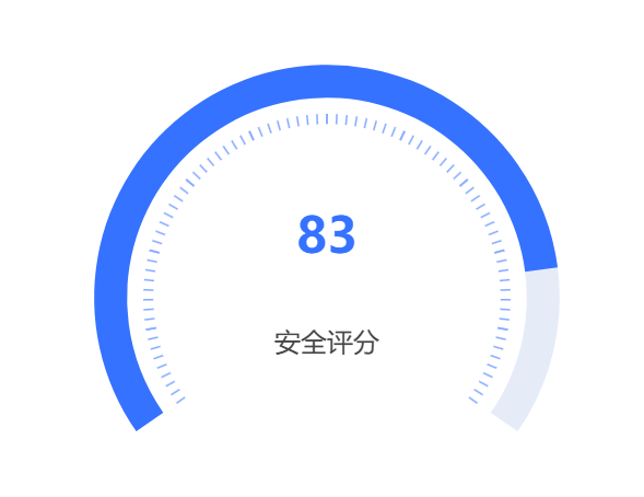 let option = { series: [ { name: 'Pressure', type: 'gauge', center: ['50%', '60%'], //仪表盘位置 radius: '86%', //仪表盘半径,图表大小 startAngle: 215, //开始角度 endAngle: -35, //结束角度 itemStyle: { color: '#3572FF' //表盘颜色 }, axisLine: { lineStyle: { width: 20,//宽度 } }, progress: { show: true, //进度条是否显示 width: 20,//进度条宽度 }, pointer: { // 仪表盘指针。 show: false // 是否显示指针,默认 true。 }, axisTick: { //刻度线 distance: 10, //刻度线与轴线的距离,负数时在轴线外 length: 6, //刻度线长。支持相对半径的百分比 splitNumber: 8, lineStyle: { color: '#86AAFF',//刻度线颜色 width: 1 //宽度 } }, splitLine: { distance: -35, //数值位置 length: 10, lineStyle: { color: '#fff', width: 1 //分隔 } }, axisLabel: { show: false //刻度文字是否显示 }, detail: { valueAnimation: true, offsetCenter: [0, '-25%'], //值的位置 color: '#3572FF', //值的颜色 formatter: '{value}' }, data: [ { value: 83, name: '安全评分' } ] } ] };
