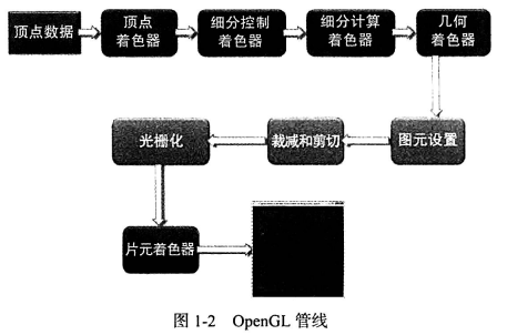 几何顶点被组合为图元(点,线段或多边形),然后图元被合成片元,最后片元被转换为帧缓存中的象素数据。