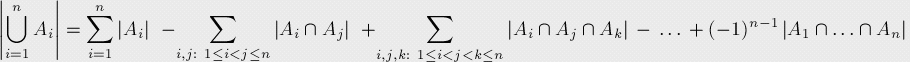 定义:在计数时,必须注意没有重复,没有遗漏。为了使重叠部分不被重复计算,人们研究出一种新的计数方法,这种方法的基本思想是:先不考虑重叠的情况,把包含于某内容中的所有对象的数目先计算出来,然后再把计数时重复计算的数目排斥出去,使得计算的结果既无遗漏又无重复,这种计数的方法称为容斥原理。