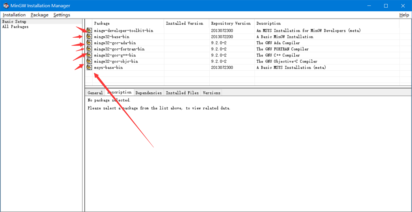 Basic setup-> 右键选择 -> 将所有的都勾选为Mark for installation