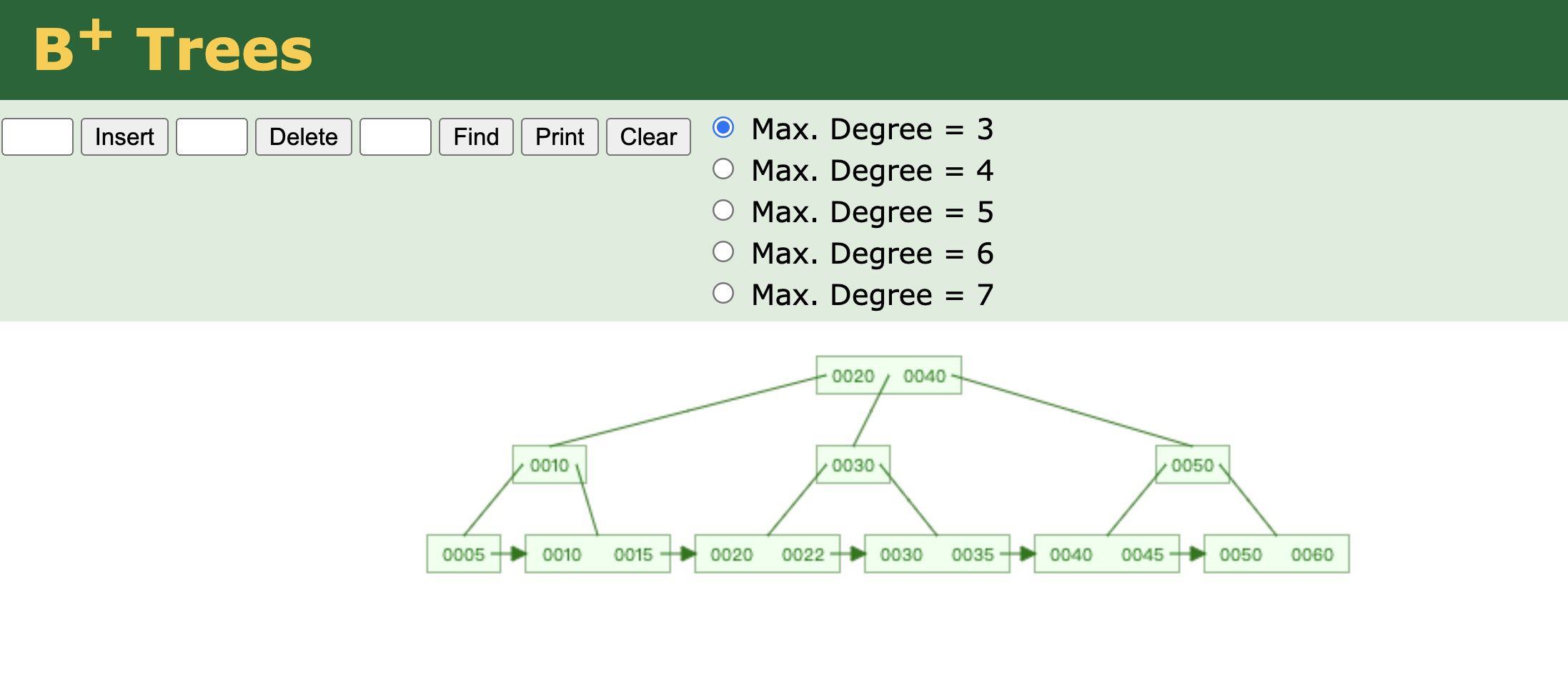 代码参考网上的文章, 但是跟实际结构有偏差, 所以自己做了优化调整, 支持多阶指针, 符合B+Tree官方结构图(https://www.cs.usfca.edu/~galles/visualization/BPlusTree.html)