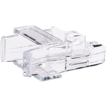 PANDUIT泛达六类非屏蔽水晶头五件套架构(SP688-C), 包括(如下图,从左到右依次为)水晶头主件(RTPSA)、穿线定位器(MTX6PLB)、卡位器(MTPCD1)、水晶头卡接器(MTX6UTPSRC)、外层护套(MTPSRBCL)。