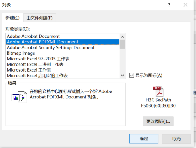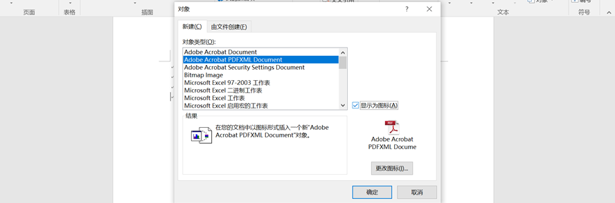 2、“显示为图标”要点中,选“……pdfxml……”那栏,因为不可能让图标直接显示下图叫“Adobe Acrobat……”的默认名,点击“”更改图标