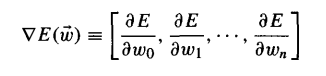 也就是E在W每个方向上的偏导数。(至于为什么沿着梯度方向函数上升最快(因此反方向下降最快),参考高等数学教材)。因此,梯度下降方法中,权值向量的更新如下: