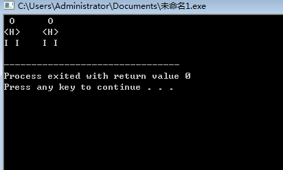 #include <stdio.h> int main() { printf(" O O \n"); printf("<H> <H>\n"); printf("I I I I\n"); return 0; }