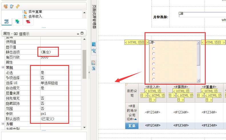 第二步:设置提示框属性如下图:(静态选项内容填写交叉表或者列表当中需要自定义排序的列)