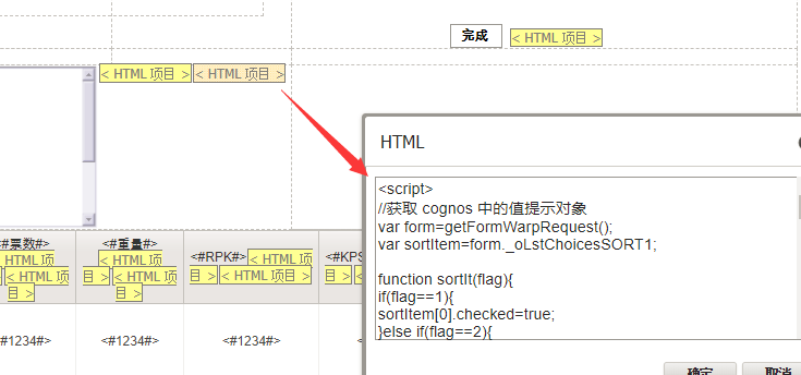 第六步:设置交叉表列HTML内容,如下图: