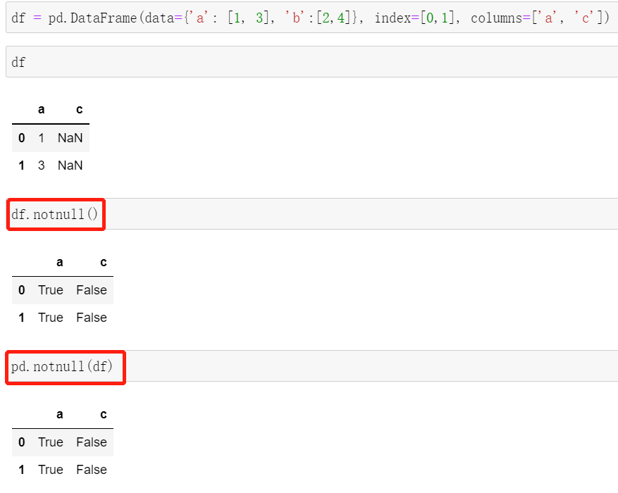 df.notnull()或者pandas.notnull(df)判断是否为非NaN