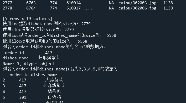 print('使用loc提取dishes_name列的size为:',dishes_name1.size)
