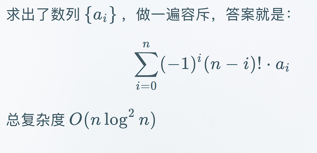 if(i&1)an+=(-1)*fac[n-i]*ans[i]%MOD;
