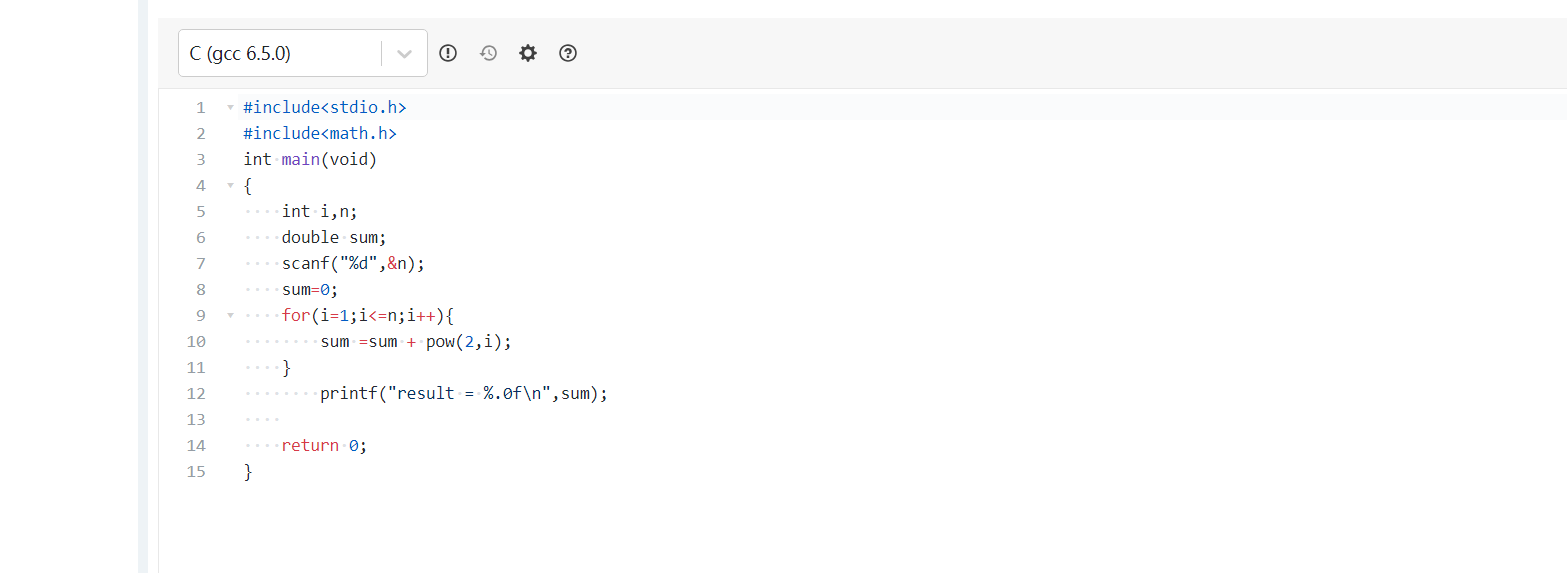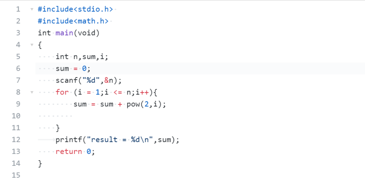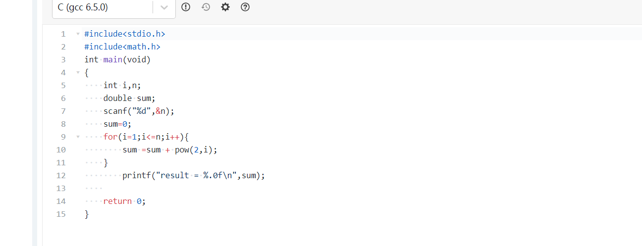 1.2 题目:本题要求编写程序,计算sum=2 1+2 2+2 3+⋯+2 n。可以调用pow函数求幂。