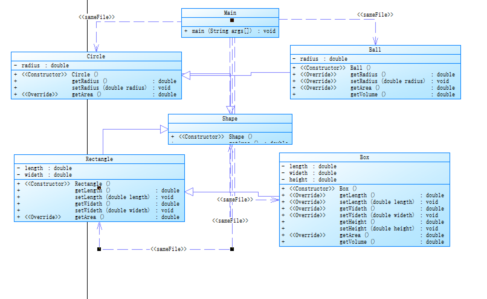 设计思路:使用类的继承与多态完成题目,首先构建一个抽象的Shape类以及创建一个泛型,泛型装着为Shape类的对象,