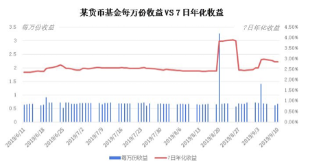 在这7天内若某一日的单日收益特别高,会使得这一日前后7天呈现出一个非常高的七日年化收益率。也就是说若投资者在释放收益这天之后买入,后续几天虽然看起来七日年化收益率很高,但实际进入投资者口袋的收益却有可能非常一般。