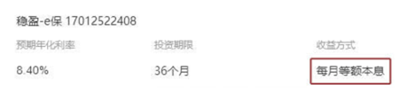 一个理财产品年化利率为9%,你投资了1W,收益方式是每月等额本息,就是说每个月产品都会返还给你部分的本金和利息,12个月还完。