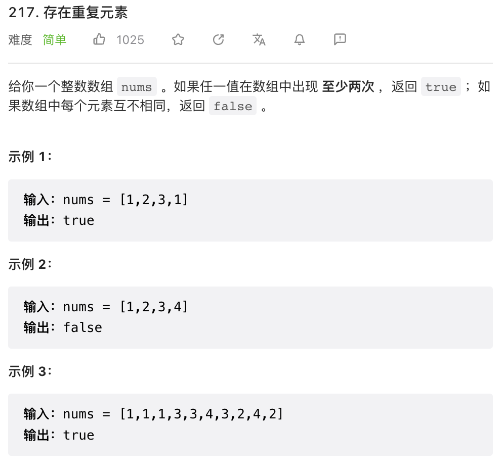 【nc】 Arrays&Hashing 1/9 Contains Duplicate 存在重复元素 217