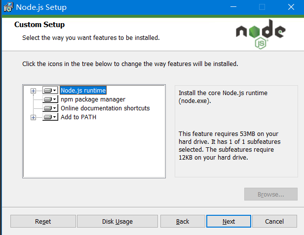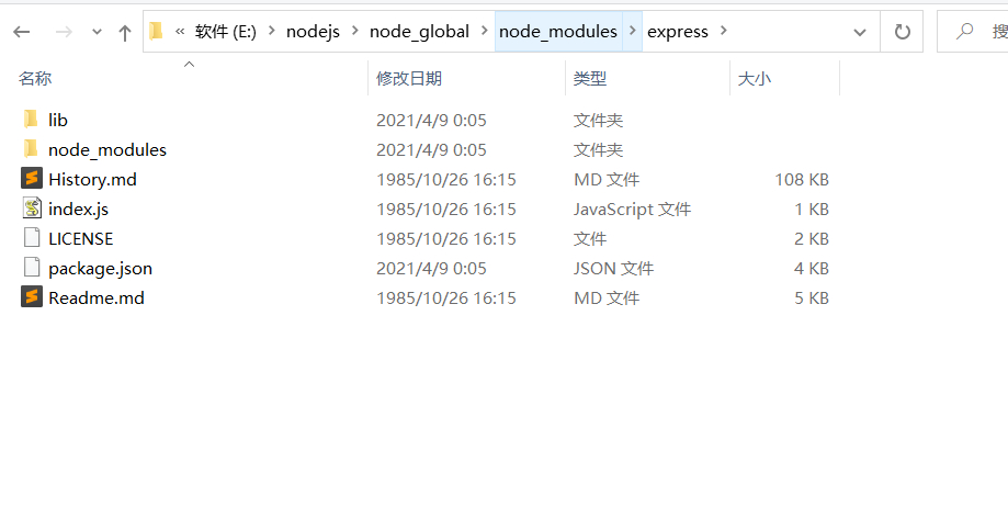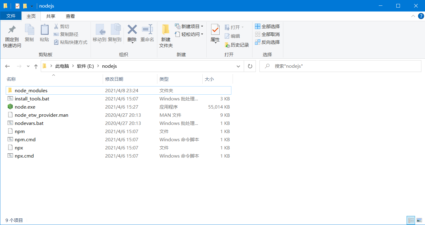 来安装目录看看都有什么内容,可以看到npm,nodejs安装带着npm一起安装,npm是node.js的包管理工具,可以安装或者卸载一些运行时所需要的包。
