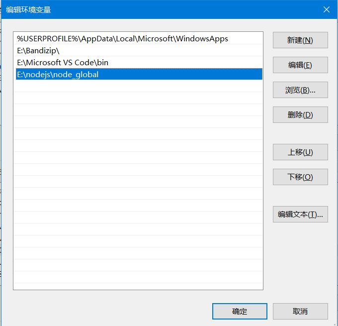 将用户变量下的path中的npm缓存路径修改为E:\nodejs\node_global