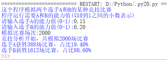 b = eval(input('请输入选手B的能力值(0-1):'))