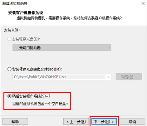 5、在安装客户机操作系统中选择稍后安装操作系统,点击下一步