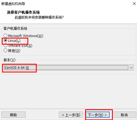 6、在选择客户机操作系统页面中,客户机操作系统选择Linux,版本选择CentOS 64