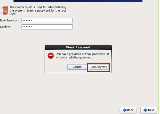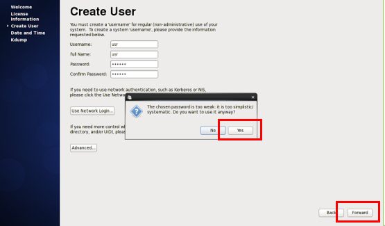 45、当密码简单时会弹出如下界面,选择 yes 然后下一步