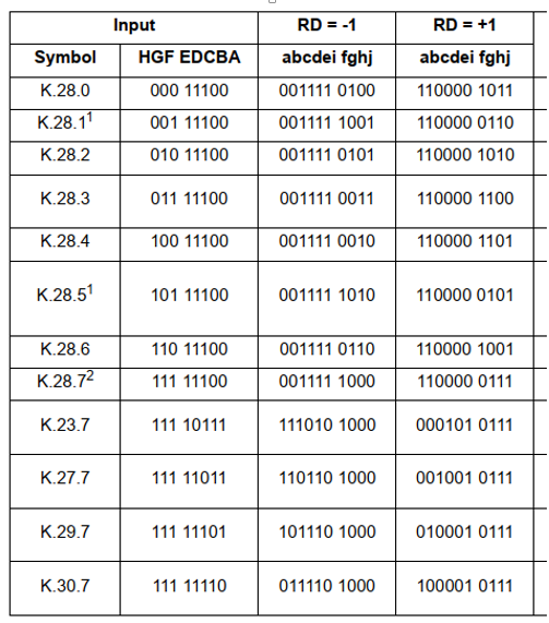 8B10B编码表可以查看链接:https://blog.csdn.net/weixin_36590806/article/details/109822204
