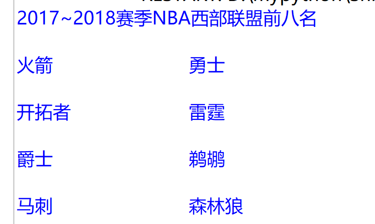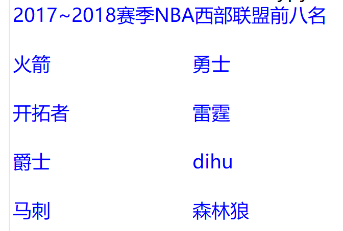 02分两列显示2017~2018赛季NBA西部联盟前八名的球队