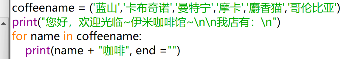 06使用for循环列出咖啡馆里的咖啡名称