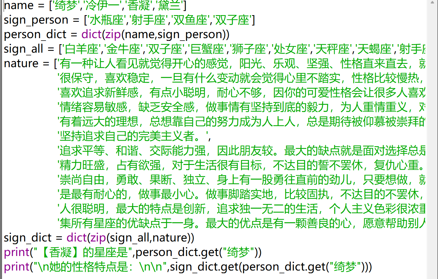 09创建一个保存女神星座的字典