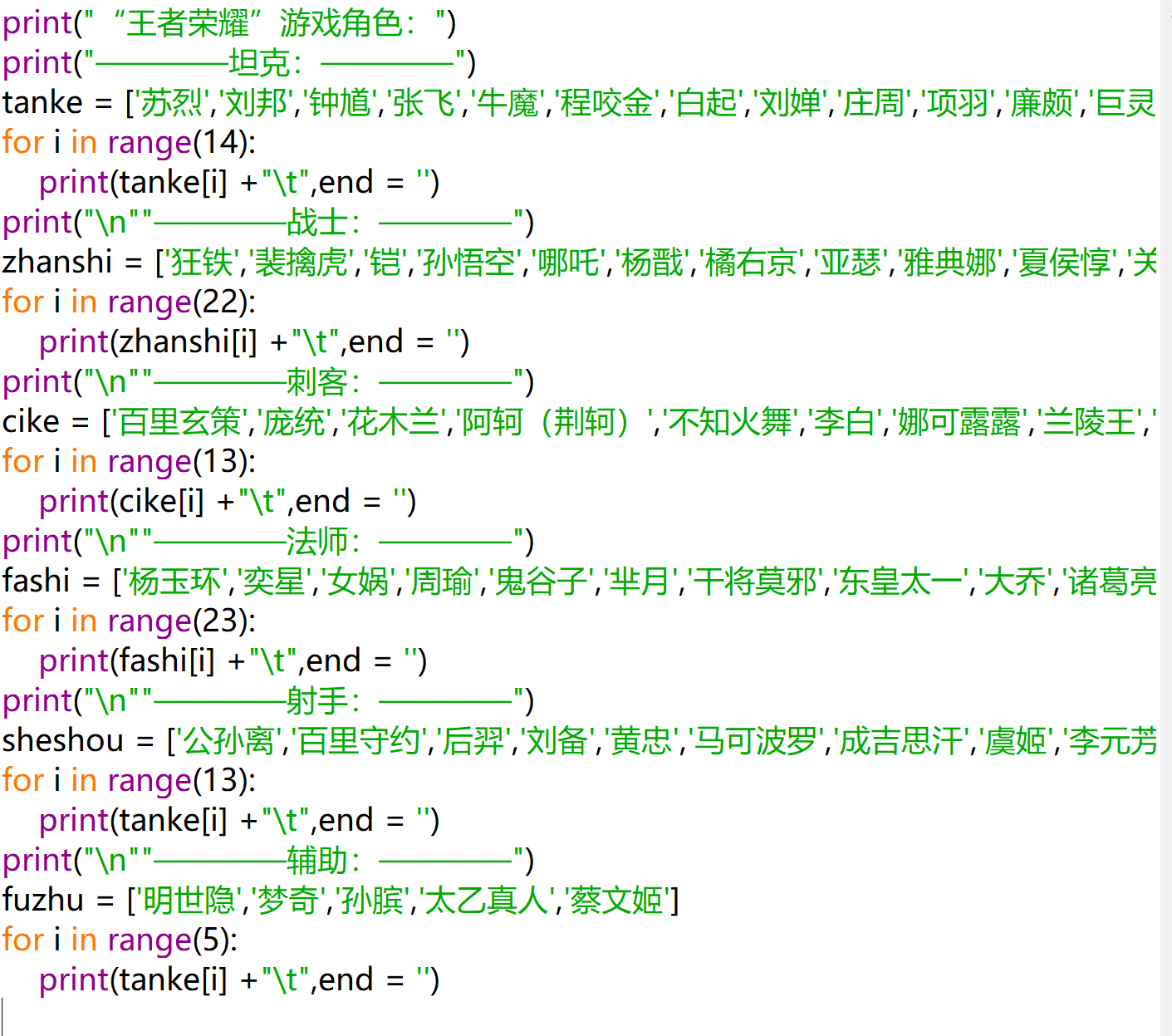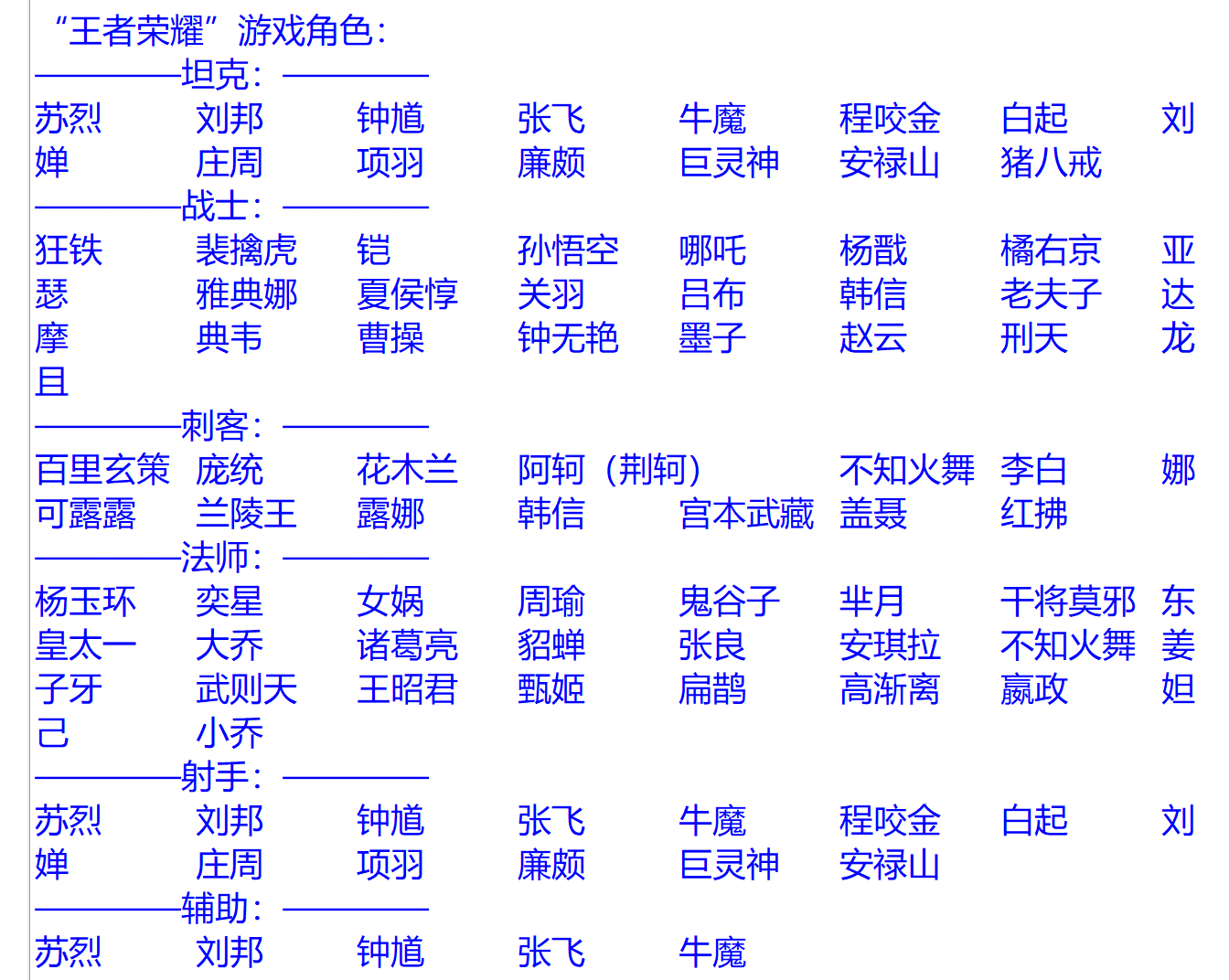 01输出“王者荣耀”的游戏角色
