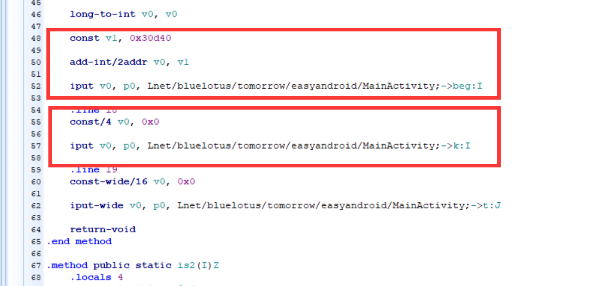 那我们解题的思路就有了,首先写脚本算出k的值,然后修改smali文件后重新编译打包运行,就会显示k的值。