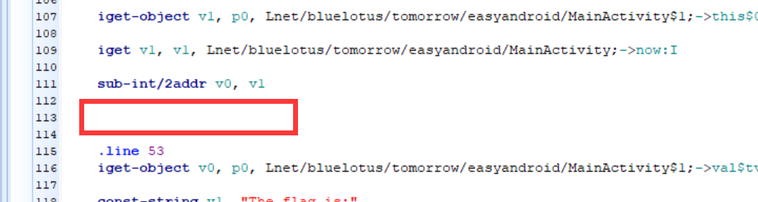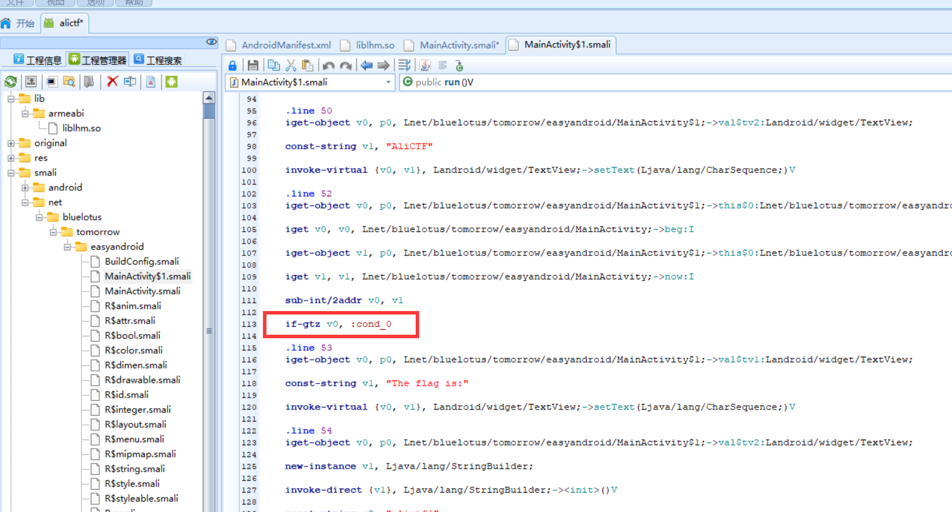 如果V0大于0则跳转到cond_0,不会执行显示flag的代码,这里直接删掉就好啦