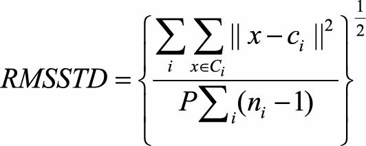 均方根标准偏差(Root-mean-square standard deviation, RMSSTD) : 用来衡量聚结果的同质性, 即紧凑程度, 定义为
