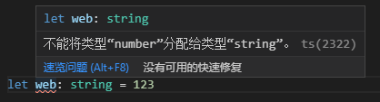 : string 是对数据变量web的类型定义,其限制web变量的数据只能为 string 类型,否则根据TypeScript语法会进行报错