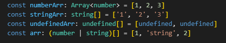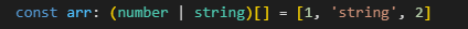 (number | string)[] 表示数据既可以为number也可以为string,这种数据形式表示联合数据类型