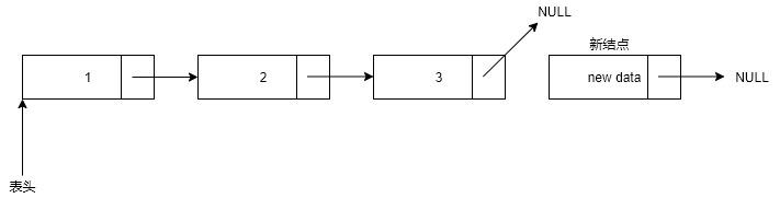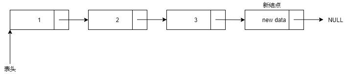 如果需要在表尾插入新结点,则需要修改俩个next指针(最后一个next指针和新结点的next指针)。