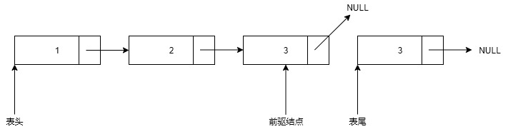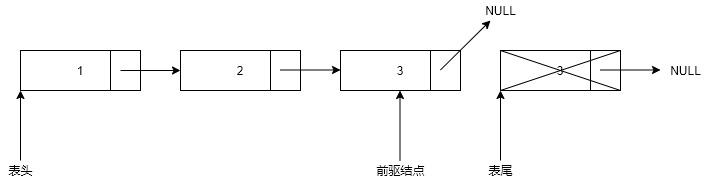 遍历链表,在遍历时要保存前驱结点(前一次经历过的结点)的位置。当遍历到链表的表尾时,将有俩个指针——表尾(tail)的指针和前驱结点的指针.