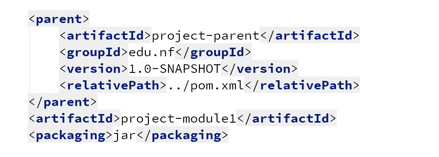 在子模块需在<parent>中配置父模块的GAV坐标,以及在<relativePath>中设置父模块的pom文件的相对路径。而在父模块中配置的属性以及所有的依赖都会被子模块继承下来。子模块需要重新定义'<artifactId>'的名称以及'<packaging>'即可。