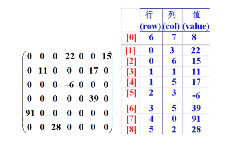 - 把具有不同值的元素和行列及值记录在一个小规模的数组中,从而缩小程序的规模