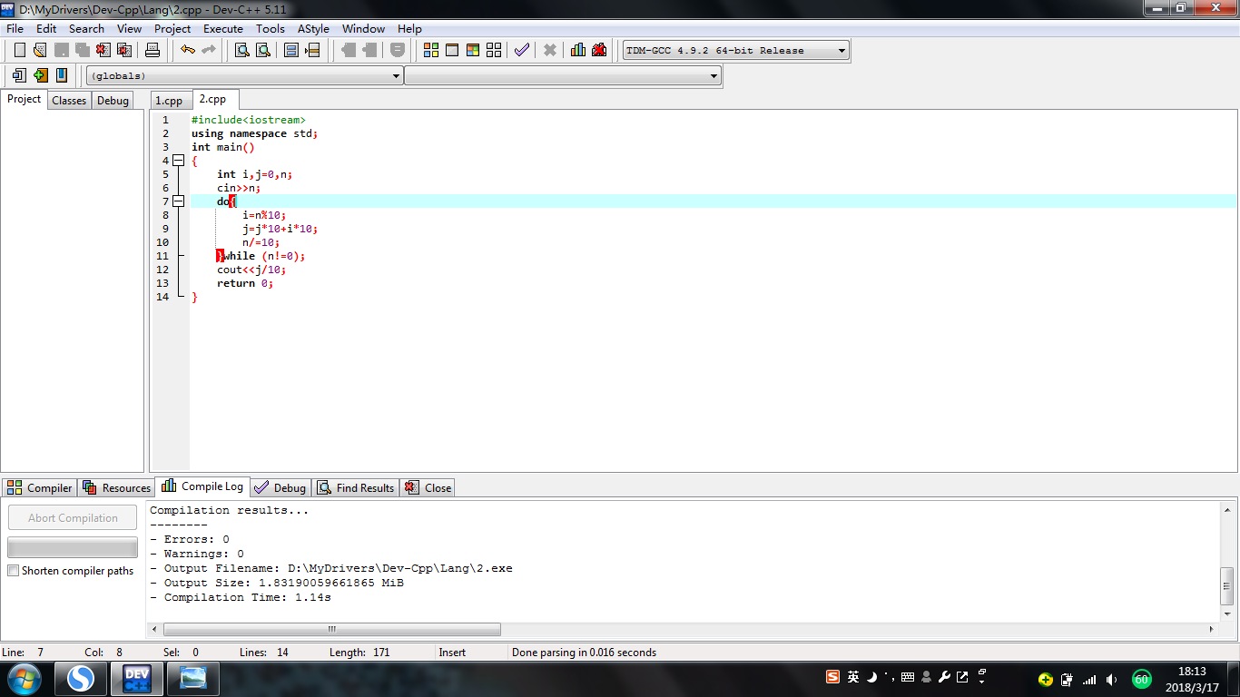 c++语言语法是要记得的,不然特别容易出现小的错误。其实最重要的思想,就是一种分析问题,解决问题的过程,例如实验的第二题,想到构造一个算法来将数的位数颠倒。