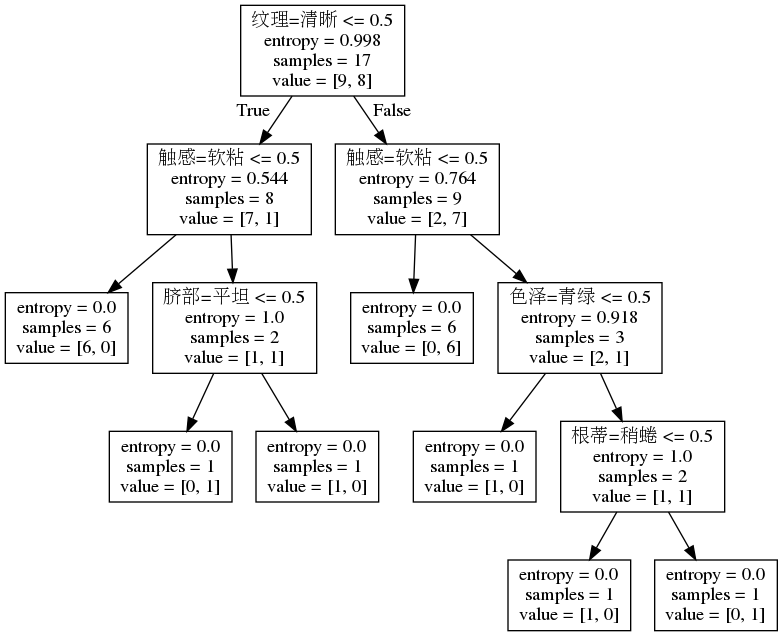 clf = tree.DecisionTreeClassifier(criterion= "entropy")#使用Id3