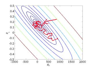 随机梯度下降法不同于批量梯度下降,随机梯度下降是每次迭代使用一个样本来对参数进行更新。使得训练速度加快。